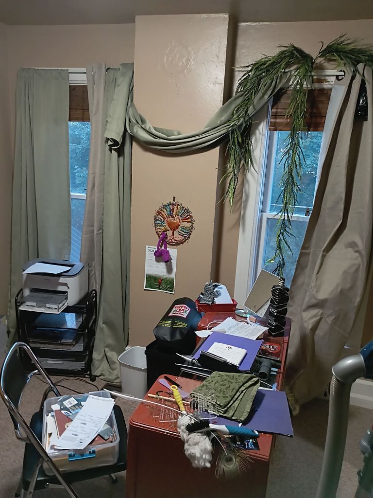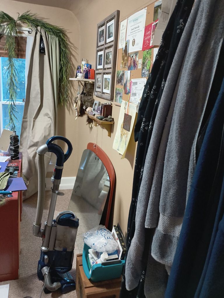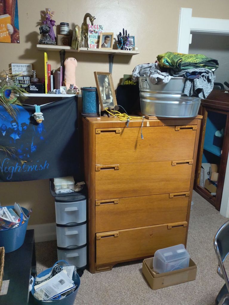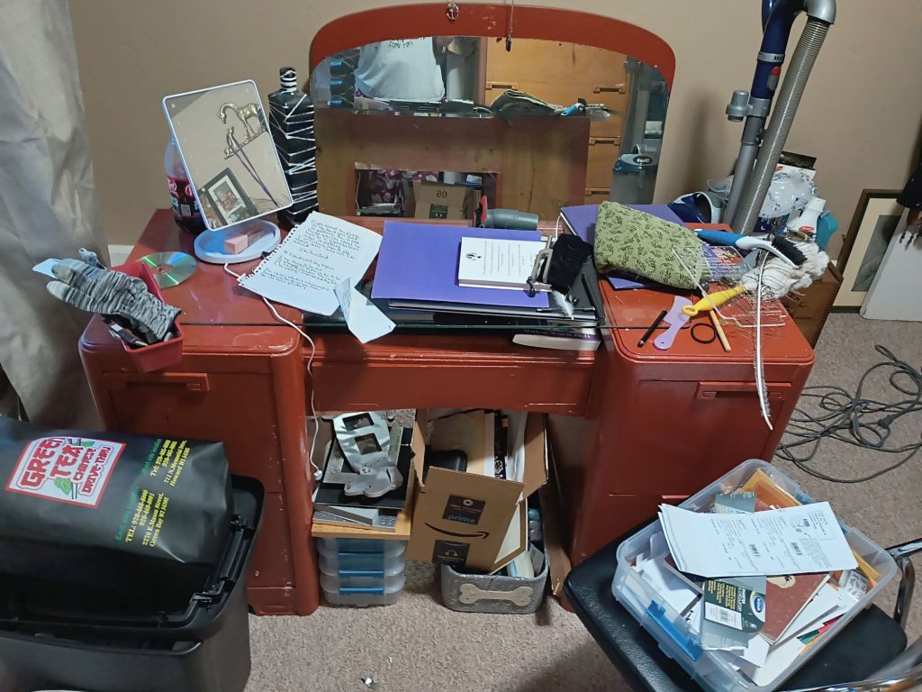 I started to try to work on my room. I’ve been avoiding it for about a year. This is what it looks like…. Somewhat but not… Organized.