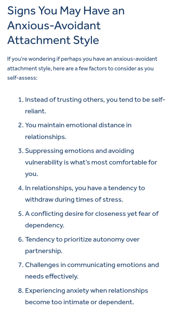 I escaped from the systems and the people that left me feeling insecure. For the rest of my life, I would struggle to see the safety. I spoke to my friend Missy about my realizations as of late. She said, c-ptsd? I thought you knew? Oh, and don’t look up anxious/avoidant. Just don’t. Did I look it up? Of course I did! And there I am. In print, on a screen, just waiting for me to find me.